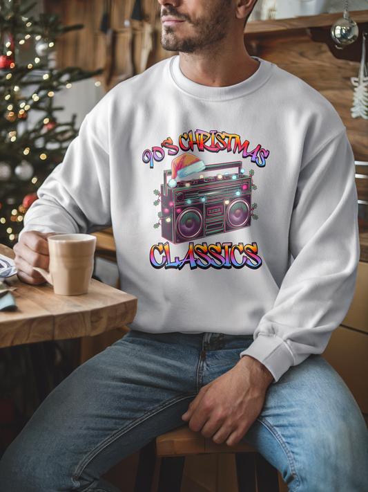 90's Christmas Classics Sweatshirt, Retro Boombox Holiday Sweater, Nostalgic Christmas Vibes
