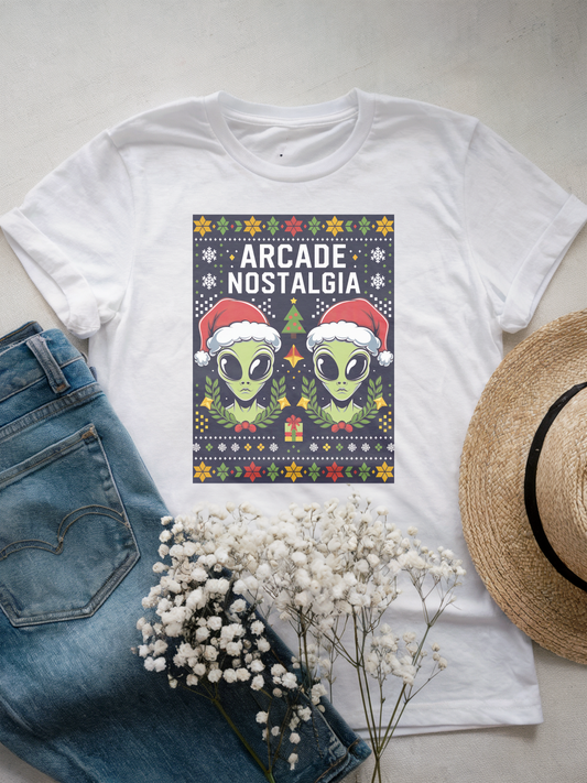 Arcade Nostalgia Alien Christmas Shirt, Retro Gaming Holiday Tee