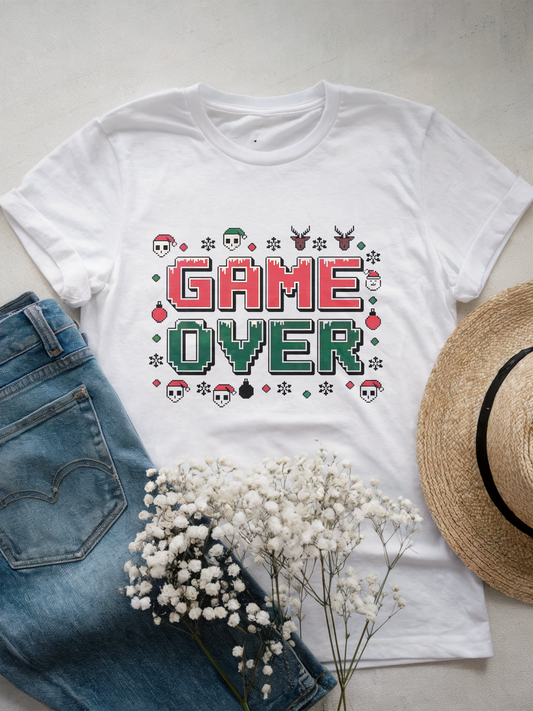 Christmas Game Over Shirt, Retro Gamer Holiday Tee, Pixel Art Xmas Design