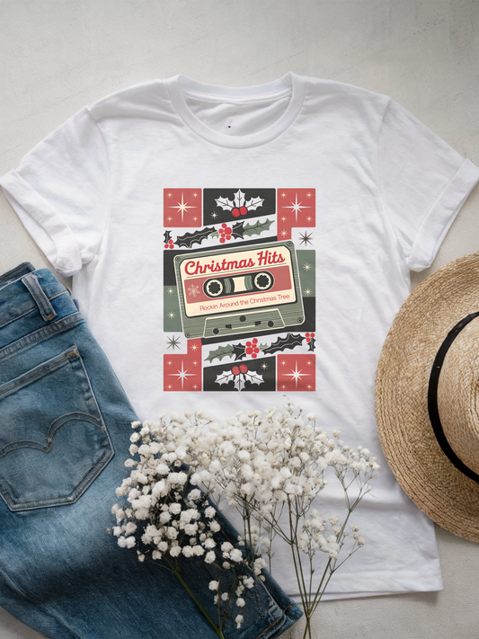Christmas Hits Cassette Tape Shirt, Retro Holiday Music Tee, Vintage Christmas Vibes