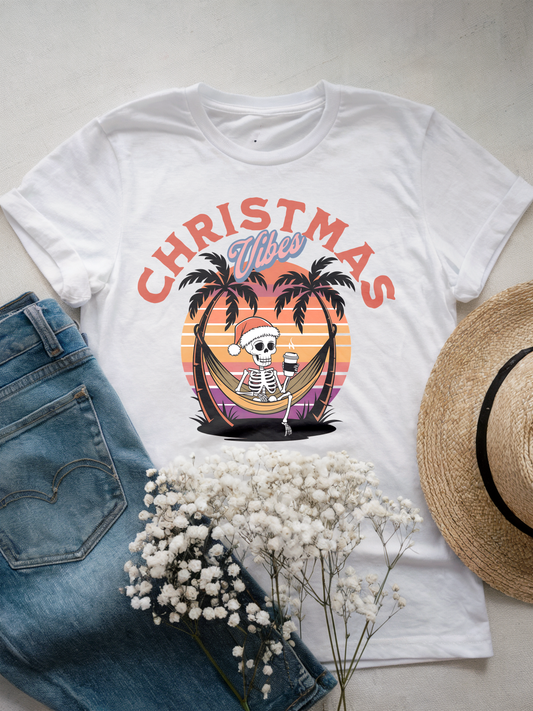Christmas Vibes Tropical Skeleton in Hammock Graphic T-Shirt